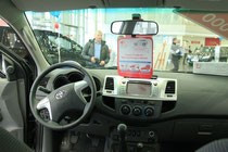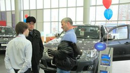 Первым пунктом на нашем маршруте стал огромный автосалон “Toyota”, в недрах которого Олег и Валерий с нескрываемым любопытством истинных исследователей изучали новенький, сверкающий в многочисленных бликах софитов автомобиль «ToyotaHilux». Все дело в том, что для осуществления предстоящего в 2014 году кругосветного путешествия команды «мастершляп» необходим мощный, надежный автомобиль, сочетающий в себе качества комфортного средства передвижения и вездехода.