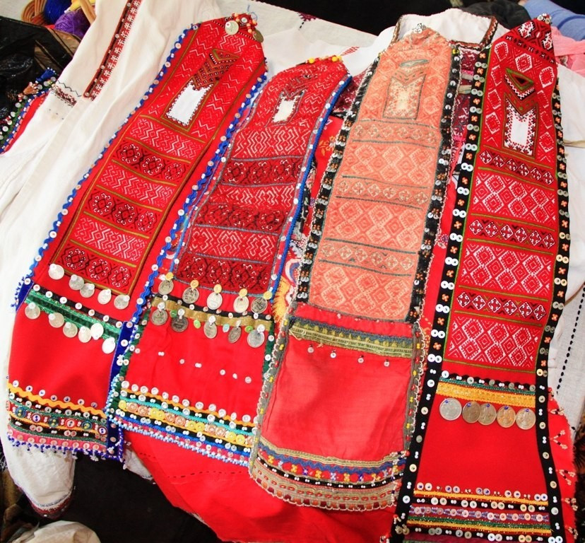 Мы наблюдали за тем, как мастерица с трепетом извлекает из старинных берестяных коробов настоящие произведения искусства – предметы народного марийского костюма, созданные на рубеже XIX и XX веков, среди них выполненные в традиционном «звениговском» стиле головные уборы «шымакш» и «сорока», поясные ремни, сумки, покрытые богатой вышивкой праздничные платки, передники, мужские рубахи, кафтаны…