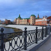 Припарковав машину возле здания Национального музея республики Марий Эл, мы отправились любоваться Московским Кремлем! Честно говоря, итальянскому архитектору, формирующему современный облик города, удалось создать очень необычную среду, объединив, казалось бы, совсем несовместимые вещи. Через широкий водоем он перекинул несколько «горбатых» мостов, позволив тем самым жителям города и туристам свободно передвигаться над водной гладью и любоваться протяженной береговой линией, вдоль которой выстроились сплошные фасады западноевропейских домиков.