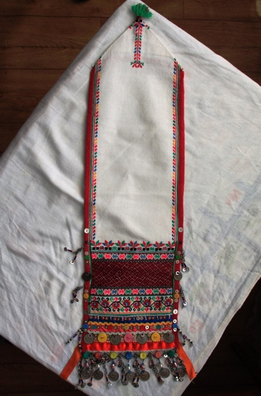 Шымакш представлял собой прямоугольный кусок холста (55–20 см), один из концов которого сшивается в виде колпачка.