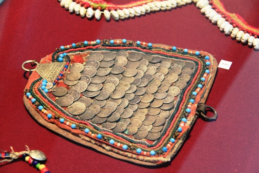Многие изделия декорированы бисером, старинными монетами царской России и первых лет советской власти, приобретенными у заезжих купцов раковинами тихоокеанских моллюсков каури.