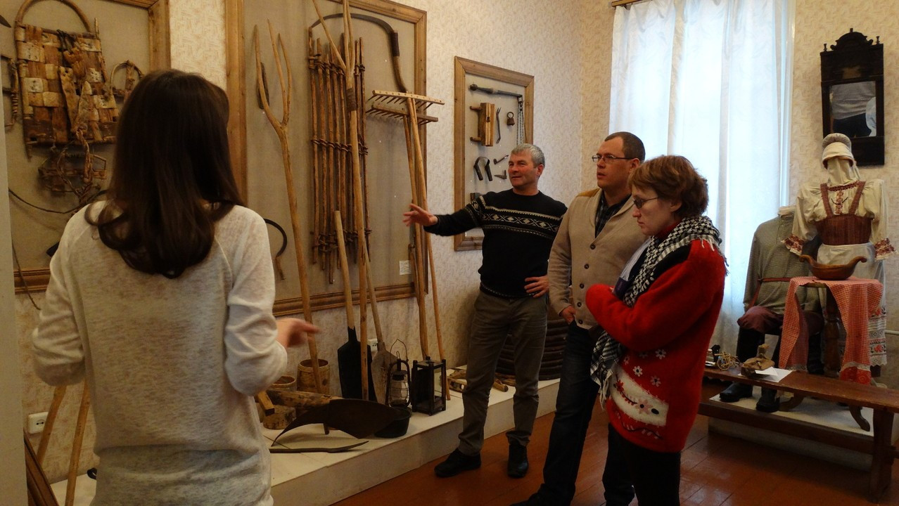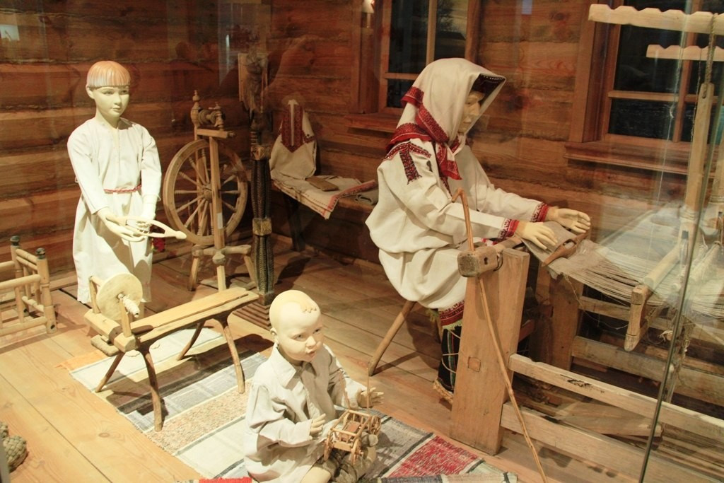Из его рассказа мы узнали множество и фактов, и легенд. Экспонаты, которые мы увидели, принадлежат всем этнографическим группам коми-зырян: верхневычегодской, верхнепечорской, вымской, ижемской, нижневычегодской, прилузской, удорской, сысольской. Здесь же представлены предметы быта русского старообрядческого населения бассейна р. Печоры – усть-цилемов.