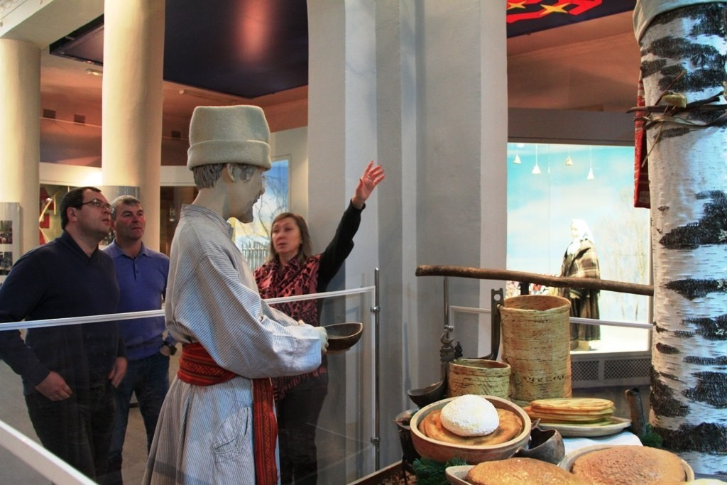 Большую помощь в организации и проведении экскурсии нам оказала Косолапова Татьяна Адомасовна, заведующая отделом маркетинга и развития. Нашим экскурсоводом стал научный сотрудник отдела этнографии Владимир Борисович Липин.