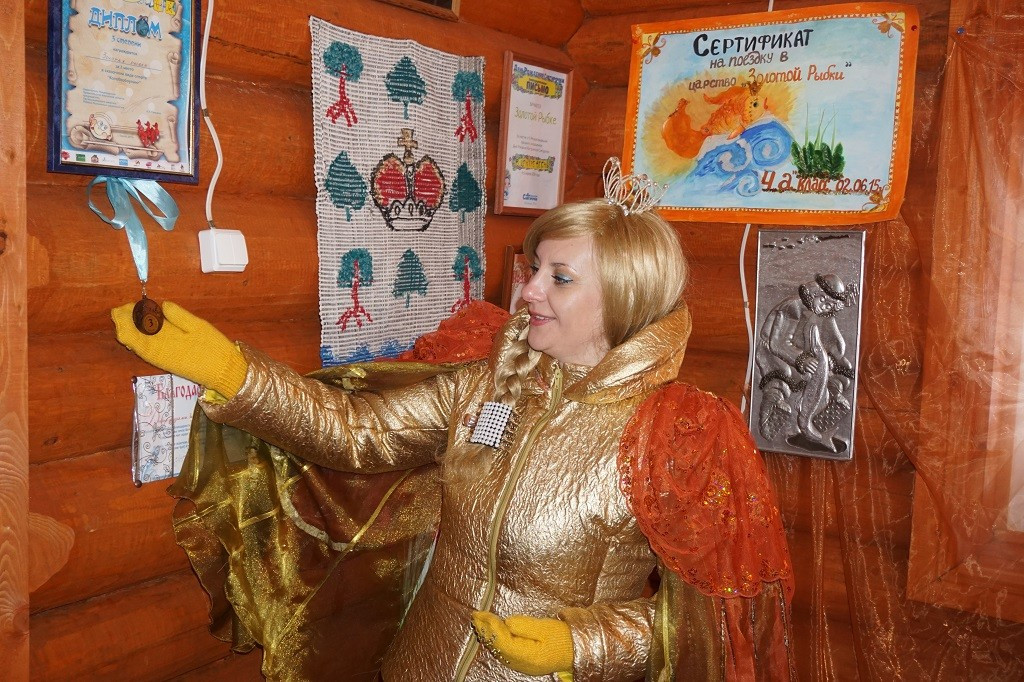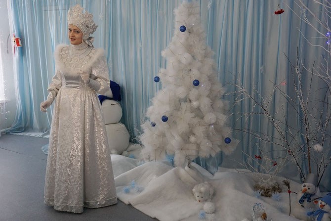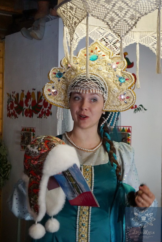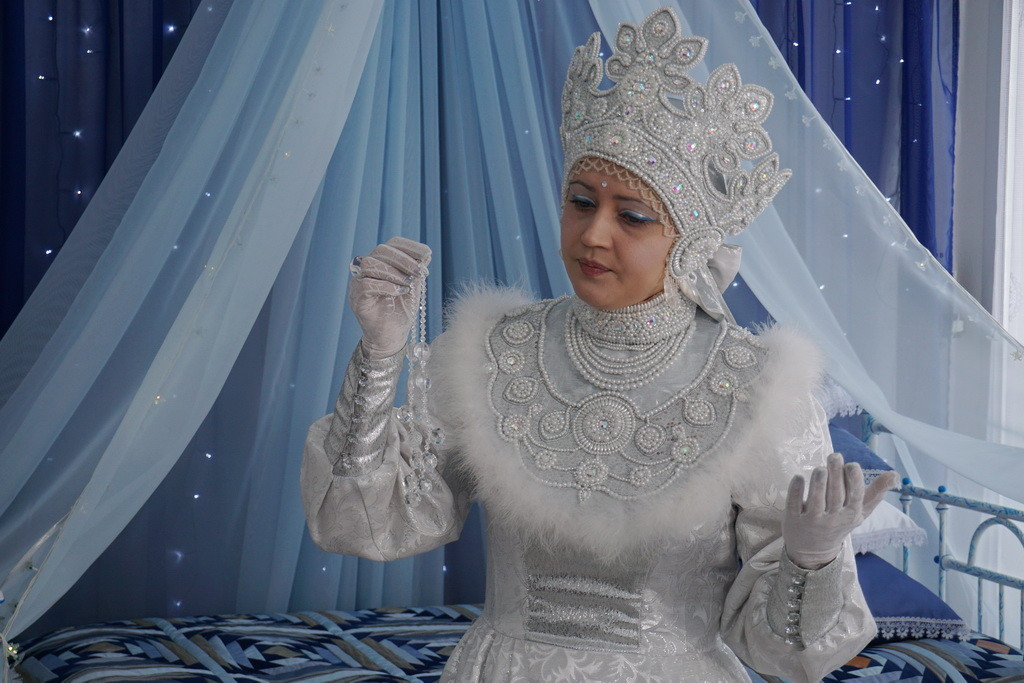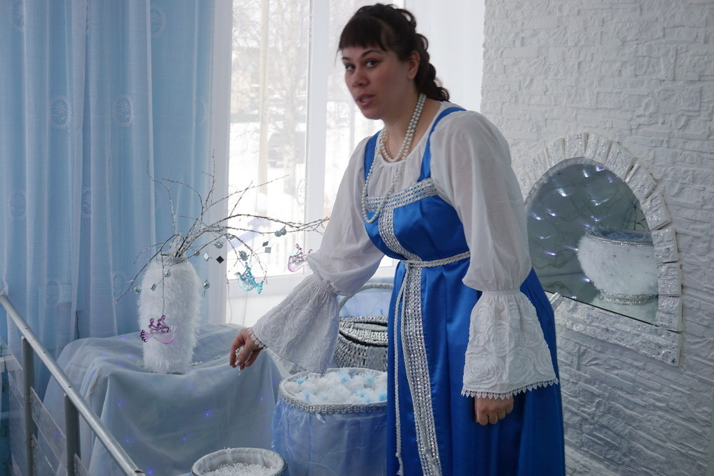 Костюмы – такие красивые, что глаз не оторвать! - сшила закройщик-модельер высшей квалификации Татьяна Катунина, которая на экскурсиях играет в образе Матушки Метелицы. А Лилия Коржакова в образе Зимы – так нежна, утонченна и прекрасна!