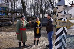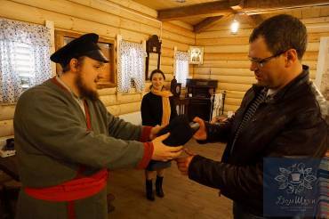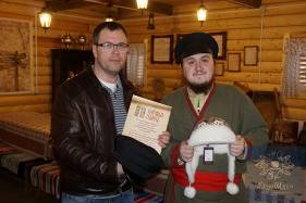 По уже сложившейся традиции Олег презентует резиденции этого мистического героя многих русских народных сказок фирменную шапку экспедиции “HatMaster” и рекламно-информационные материалы о городе Вятские Поляны и Музее головных уборов народов мира «Дом шляп».