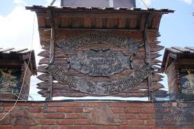 Вместо ручек на дверях – деревянные колеса, рядом стоит резная красавица с керосиновой лампой в руке и отрешенно смотрит в пространство будто заколдованная.