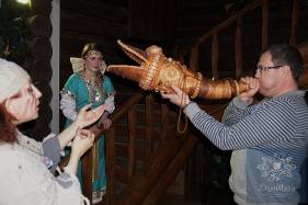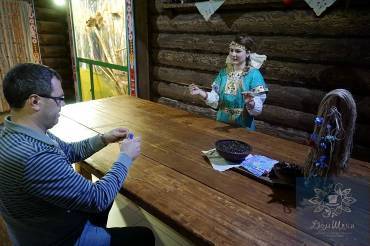Приобретя забавные сувениры в расположенном в фойе терема сувенирном киоске, оправляемся в дальнейшее путешествие, на сей раз – к Обыде (удмуртской Бабе Яге). Впрочем, очень убедительный персонаж нас уже порадовал своим присутствием и убедительной игрой. Как впоследствии оказалось, не случайно! Но обо всем – по порядку.