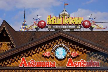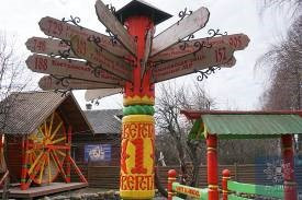 После сувенирной лавки, в которой, как и положено у Яги, повсюду висят пучки целебных трав и грибов – ингредиентов для волшебного зелья лесной колдуньи, среди них – многочисленные поделки в виде избушек-на-курьих-ножках и самой Яги, летящей в ступе, с метлой в руках, выходим на улицу, наслаждаясь ярким солнцем, радующим в этот предвечерний час.