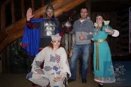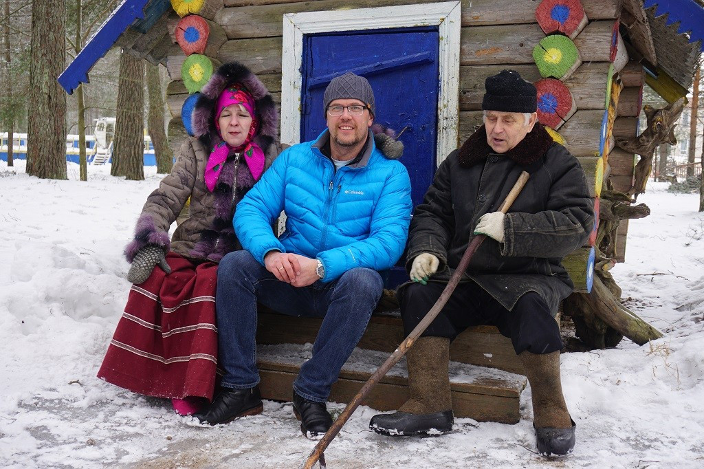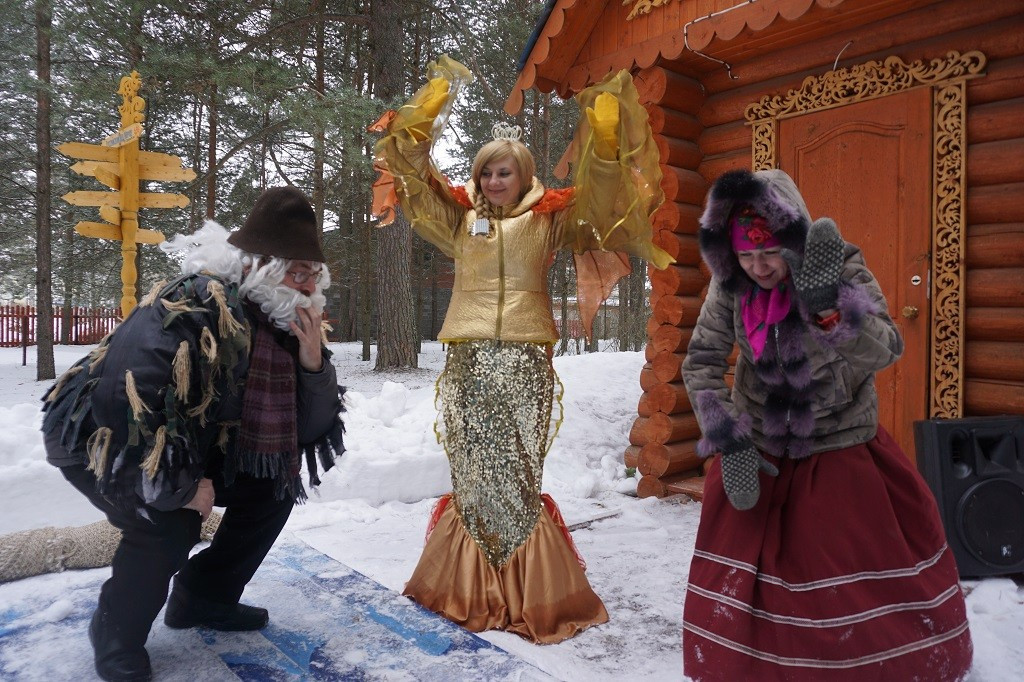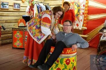 Вдоволь насладившись катанием на горках, делаем общий снимок с Ольгой Анатольевной, хозяйкой «Заповедника сказок», с его жительницами Кикиморой Вятской и Бабой Ягой, и вот мы уже сидим за столом в просторной горнице, обсуждаем перспективы сотрудничества в продвижении наших проектов.