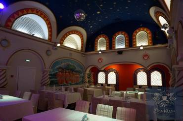 Денис Иванович приглашает нас на чаепитие, в зале уже накрыт праздничный стол, установленный среди невиданной зверей и цветов, по традиции, после веселого сказочного представления проходят небольшие деловые встречи для обсуждения перспектив сотрудничества и совместной «сказочной» деятельности.