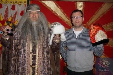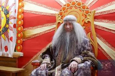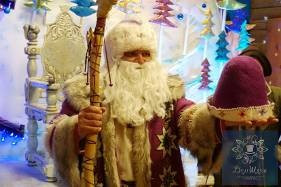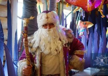 Вот. Принялись мы все хором звать хозяина терема, изо всех сил кричали-призывали, и вот, наконец, появился сам повелитель снегов и метелей. В шубе фиолетовой, в меховой шапке, с огромной седой бородой, с посохом сказочным, волшебным.