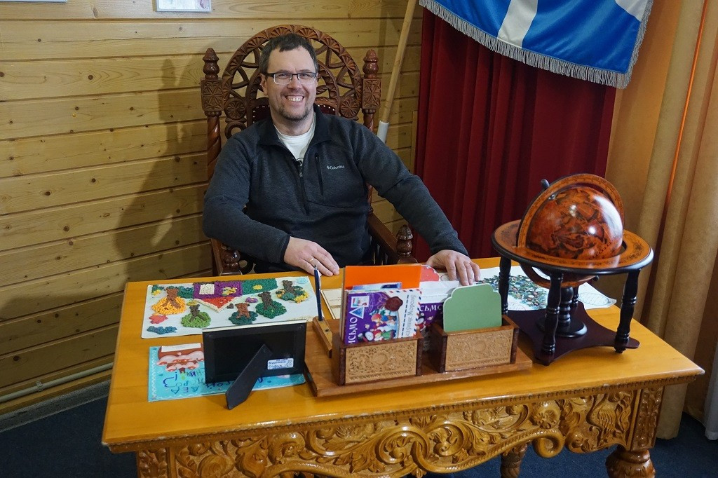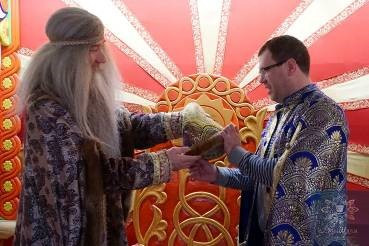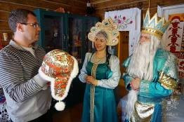 Торжественно передается нарядная, красочная шапка удмуртского Деда Мороза в руки Олега, а вместе с ней – напутствие, чтобы принесла она удачу и процветание музею, радовала его юных посетителей, оберегала от бед и напастей. Потому как шапка эта волшебная, от горячего сердца доброго зимнего волшебника.