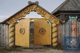 Итак, мы подъезжаем к широким резным воротам, на которых красуется надпись: «Резиденция Бабы-Яги».