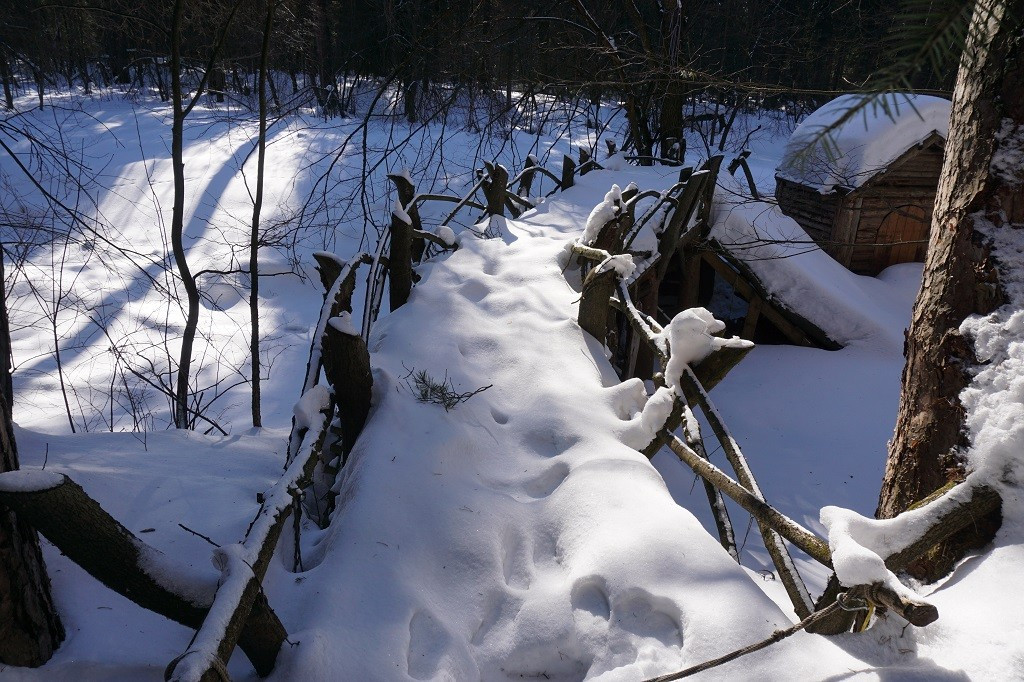 Лес становится всё гуще, деревья – выше, синие мартовские тени скрывают многочисленные пни да коряги…