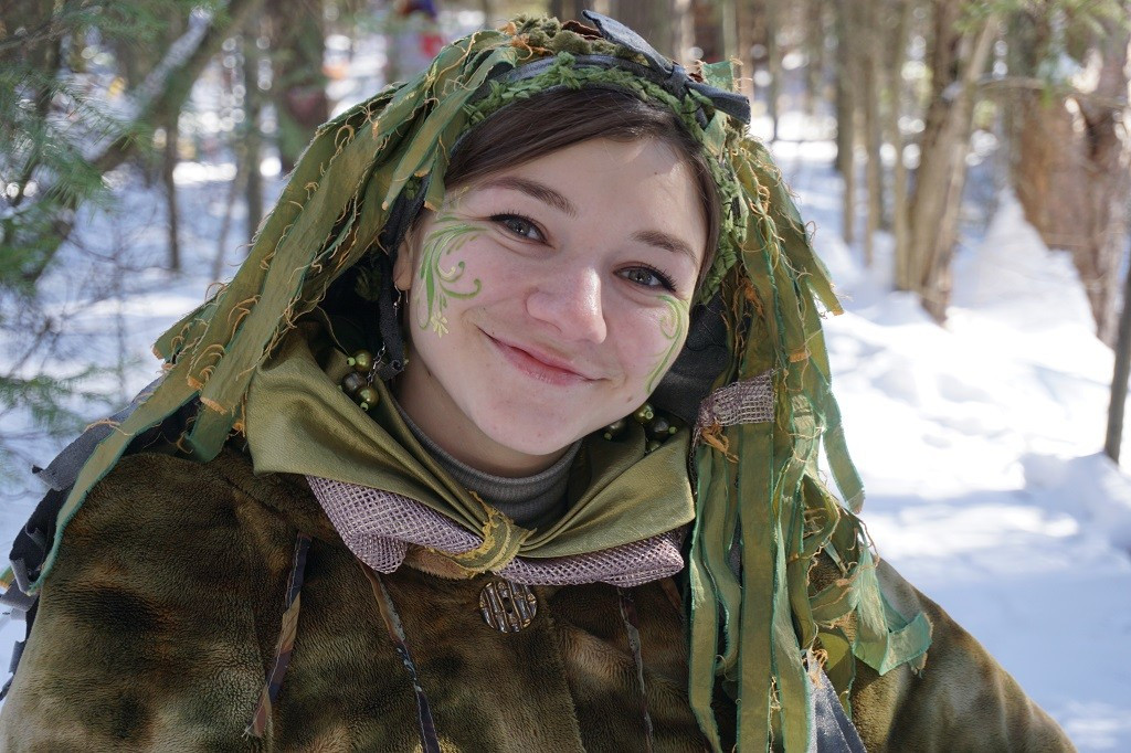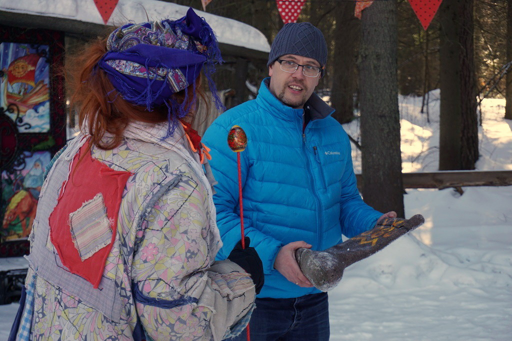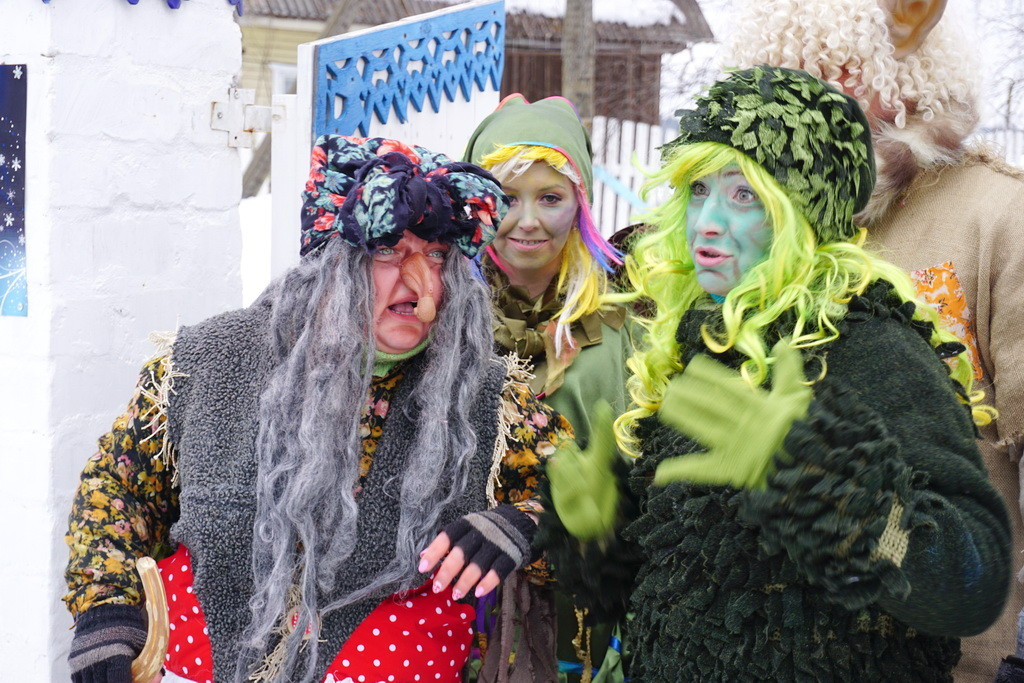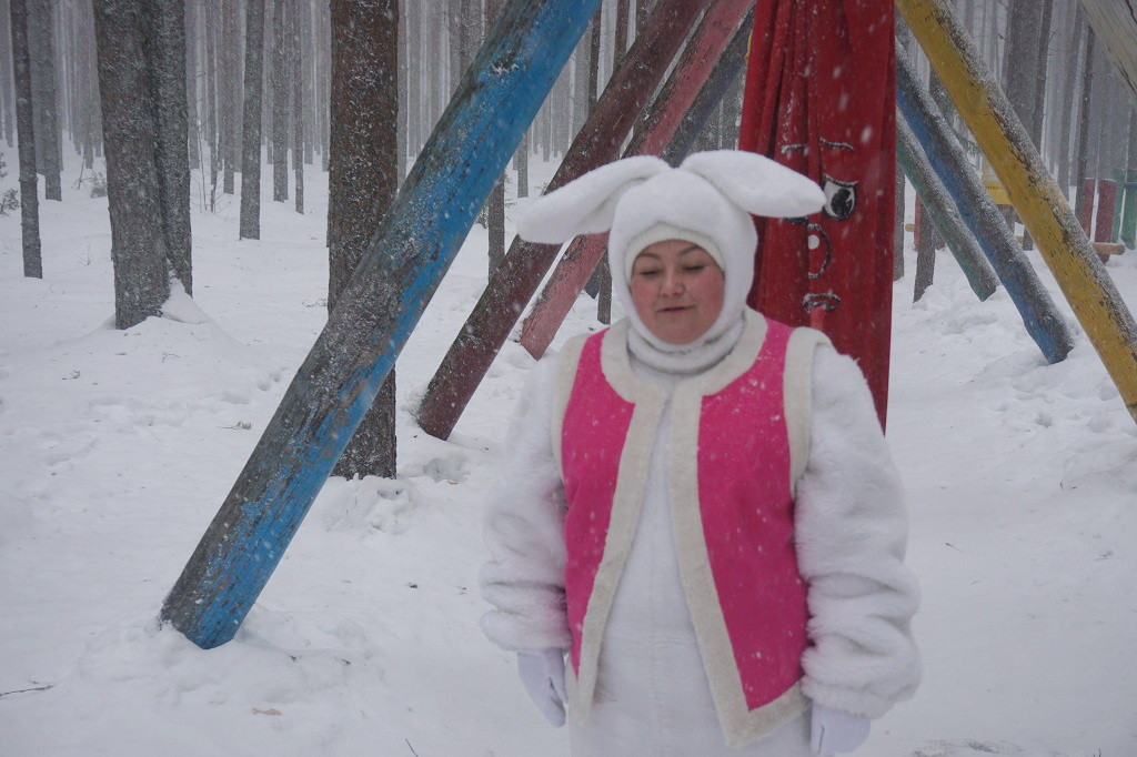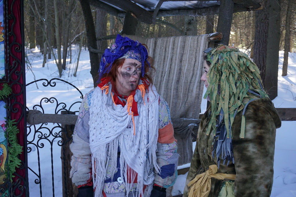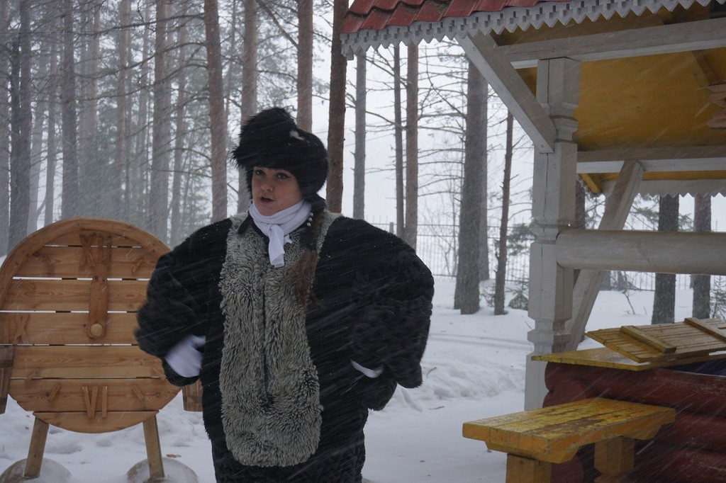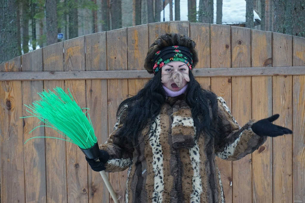 Вышла нас поприветствовать Снегурочка, по-удмуртски зовут ее «Лымы ныл», тоже принялась уговаривать Обыду (Ягу), да только та – ни в какую: