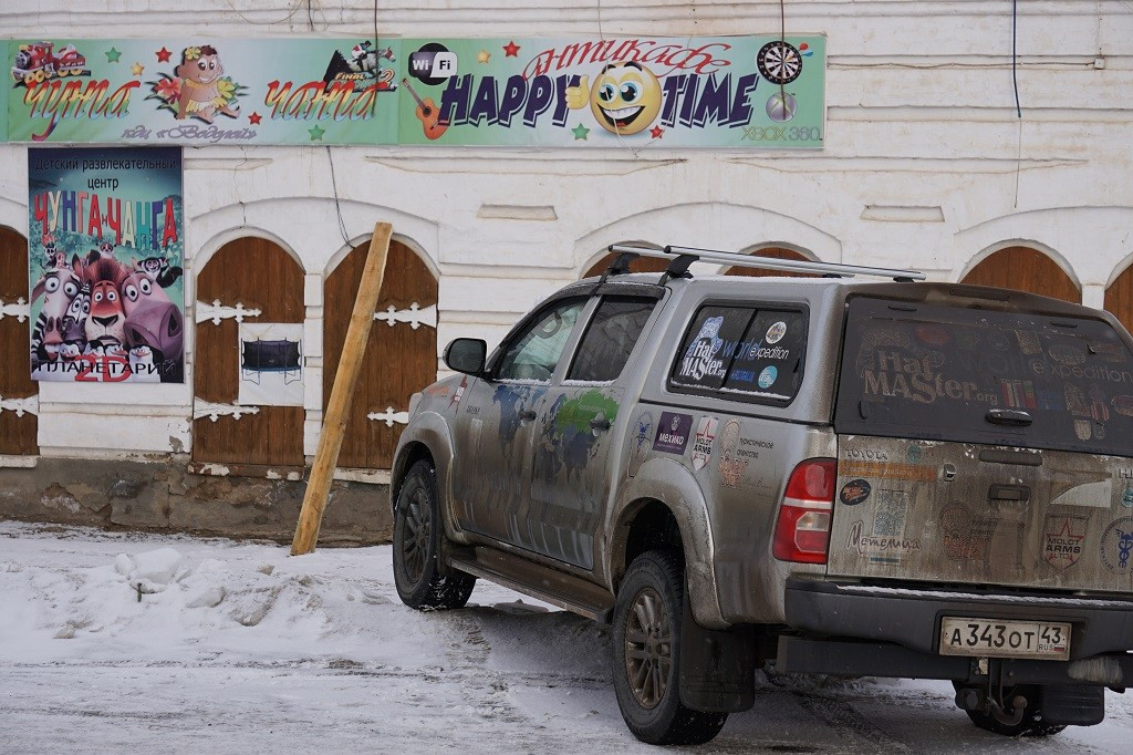 По мере приближения ночи температура воздуха опускается все ниже и ниже, из вятских весенних луж мы попадаем в 15-градусный мороз, который с каждым часом усиливается. Поздно вечером добираемся до границы с Архангельской областью, а затем – до села Яренск.