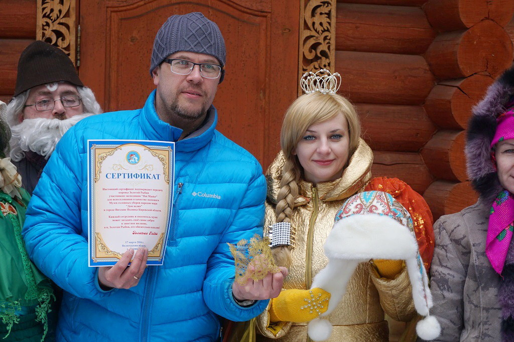 Мы благодарим Дениса Ивановича за радушный прием, за веселое, сказочное настроение, подаренное нам актерами, задействованными в театрализованном представлении (обычно привлекаются актеры Дома культуры), за ценный подарок музею.