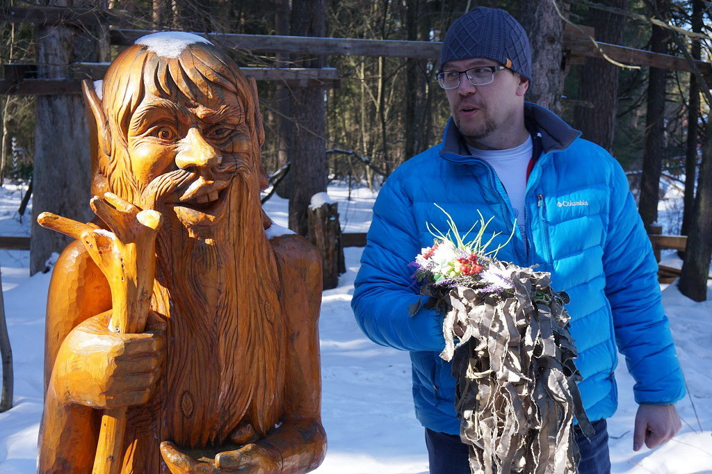 Сергей предлагает провести нас тропой сказок к самому культовому месту резиденции, к избушке Бабы-Яги, находящейся на одноименной речке.