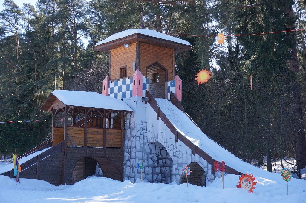 Кикимора увлекает нас на все более высокие горки, меняем «ватрушки» на «ковры-самолеты», и с ещё большей скоростью мчимся по замысловатой ледяной трассе в клубах снега. Действительно, прекрасное место для отдыха с детьми от городской суеты, замечательно, что есть такое в черте полумиллионника Кирова.