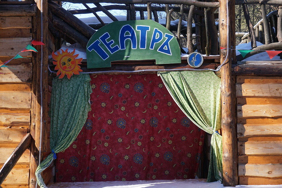 Еще здесь много разнообразных строений, есть веранда для проведения детских спектаклей и праздников на открытом воздухе, целый парк деревянных скульптур.