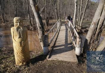 У реки – высокие сказочные ворота с висящими по обе стороны «ловцами снов», это уже элемент культуры североамериканских индейцев. Речка совсем узкая, даже в пору разлива ширина ее метра 3-4, не более.