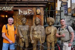 По пути, разумеется, останавливаемся возле памятника «Великому Комбинатору»: бронзовая фигура Остапа застыла на фоне двенадцати стульев как иллюстрация одной из ключевых сцен из поистине бессмертного произведения Ильфа и Петрова.