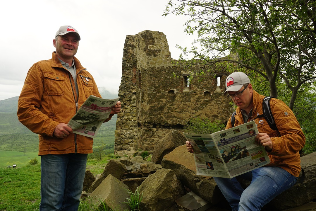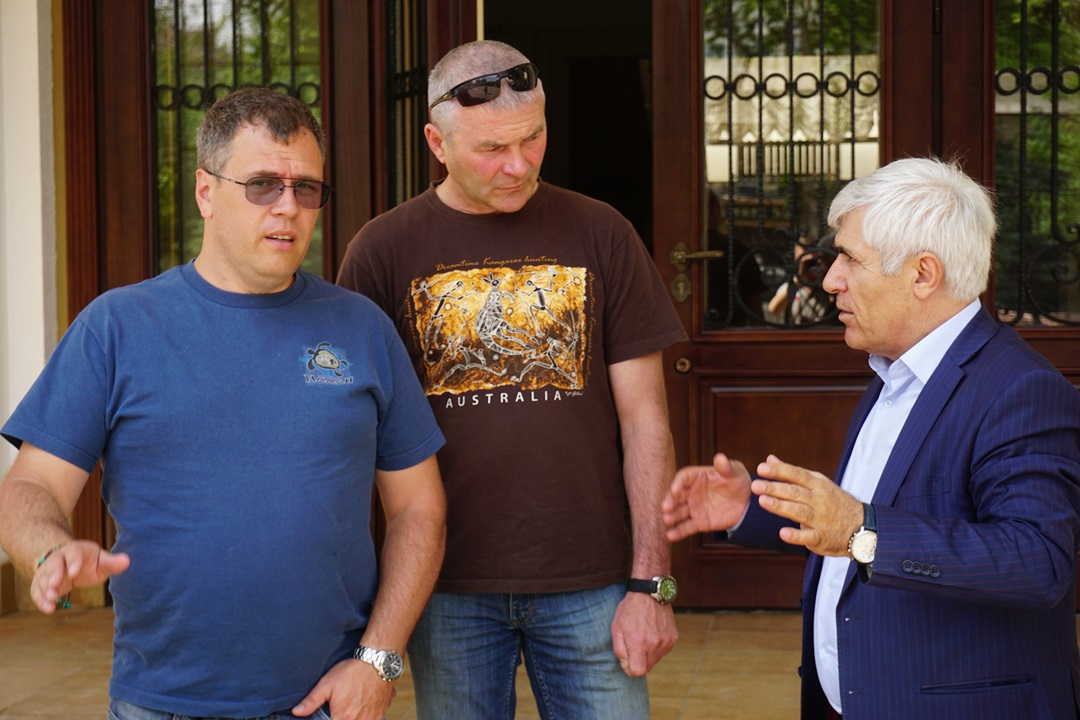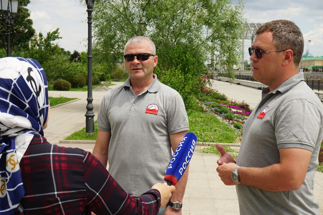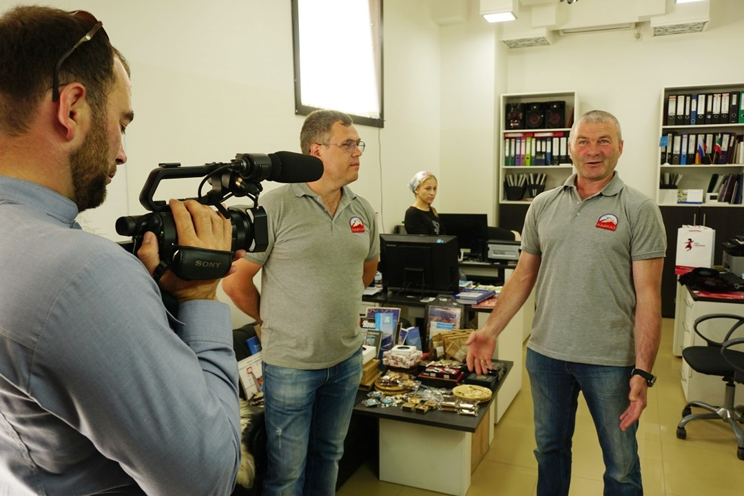 Некоторое время общаемся, беседуем о наших экспедициях, делимся впечатлениями о посещении стран Кавказа. Вскоре подходят представители городских и республиканских СМИ, здесь же, в офисе Туристско-информационного центра проходит пресс-конференция. Олег и Валерий ответили на многочисленные вопросы журналистов, рассказали об истории и целях проекта, поделились первыми впечатлениями о Чеченской Республике.