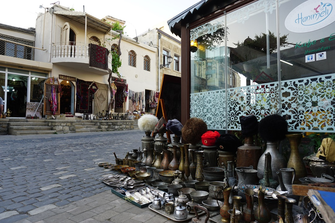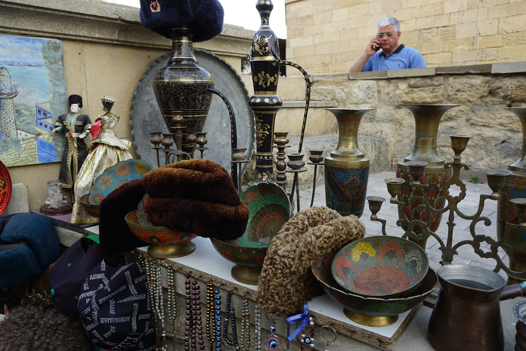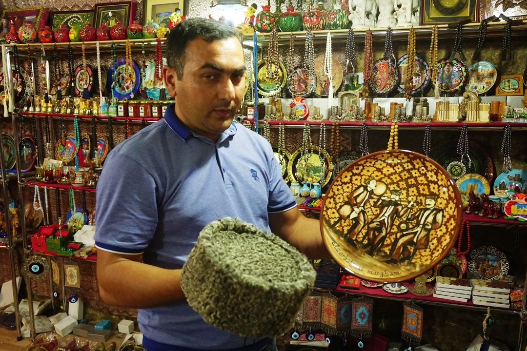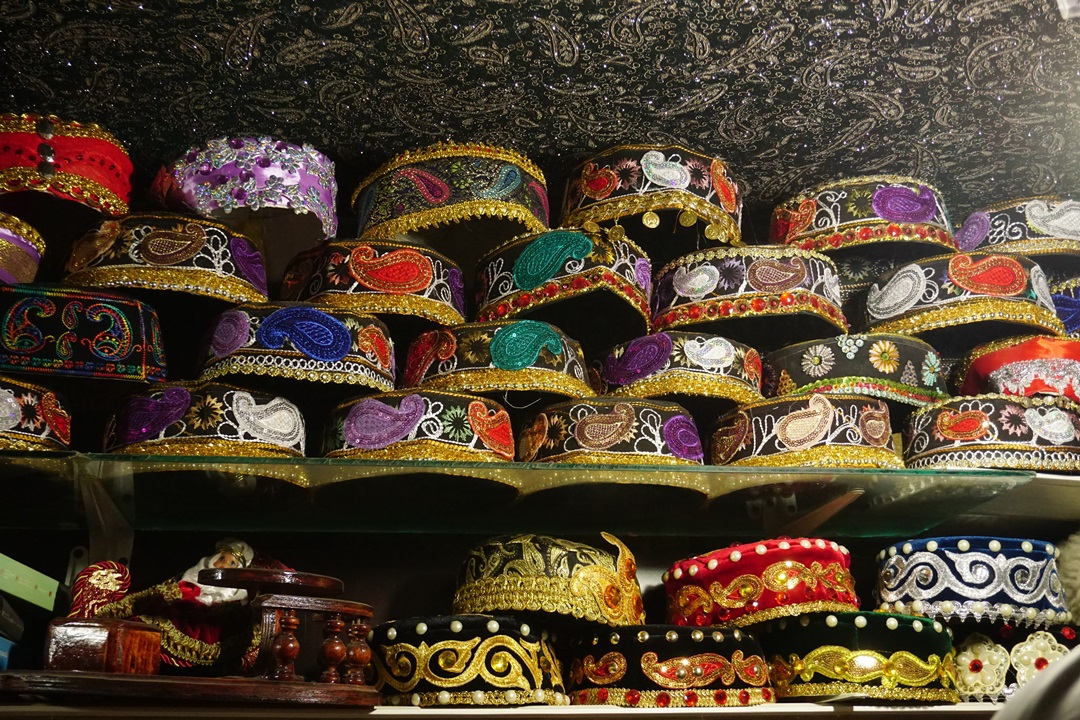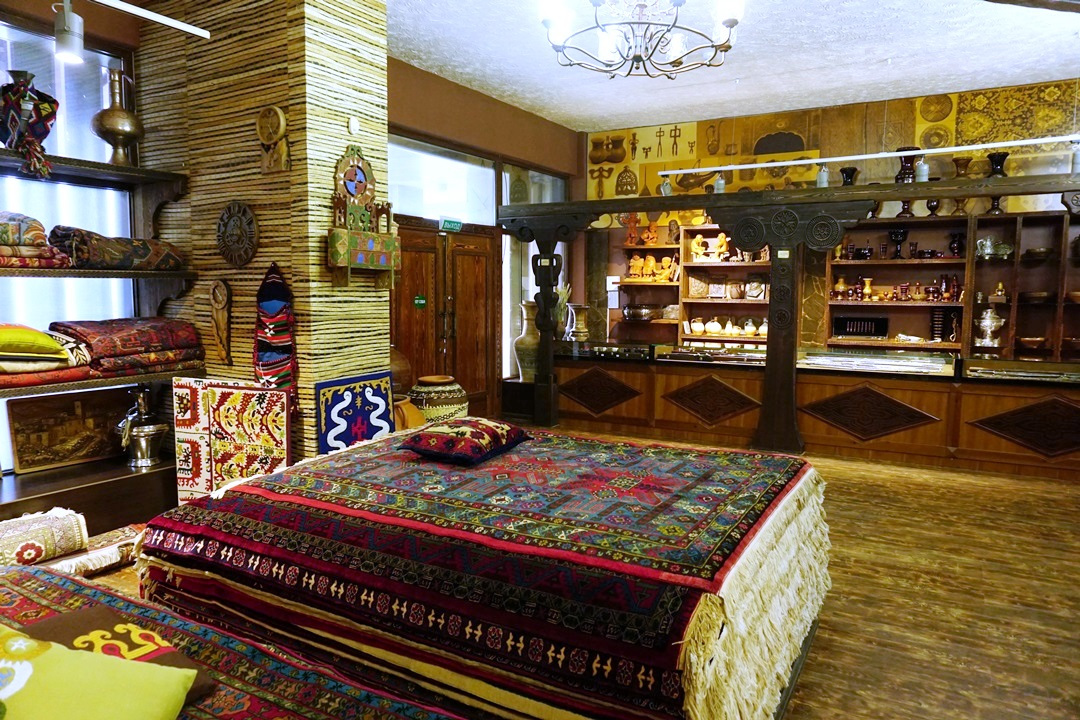 В сувенирном магазине, расположенном на первом этаже центра, Олег и Валерий приобрели три женских национальных головных убора для коллекции музея «Дом шляп», это кубачинский «каз» и два «чохто», каз представляет из себя головной платок, расшитый декоративными элементами, выполненными золотой нитью.