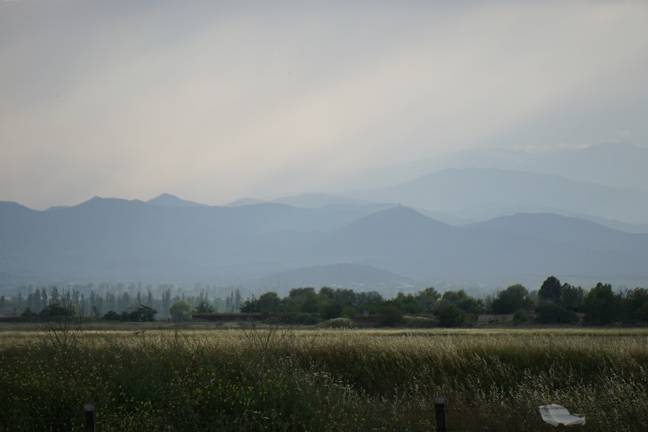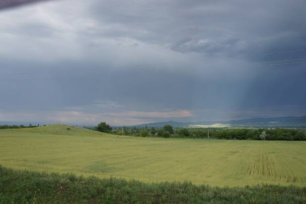 Вскоре на горизонте показались отроги Кавказских гор, а предгорную долину закрыла сплошная пелена свинцовых дождевых туч.
