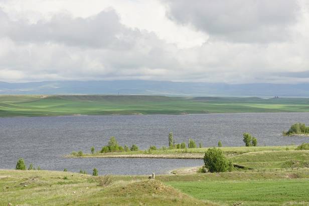 Мы направляемся по трассе, проложенной среди обширных ковыльных степей. На пути нам встречаются перелески и даже небольшие сосновые боры, но постепенно пейзажи становятся все более однообразными, открывая широкий круговой простор южной степи, где гуляют сильные ветры, под их натиском колышется ковыль.