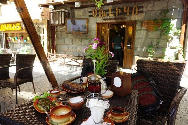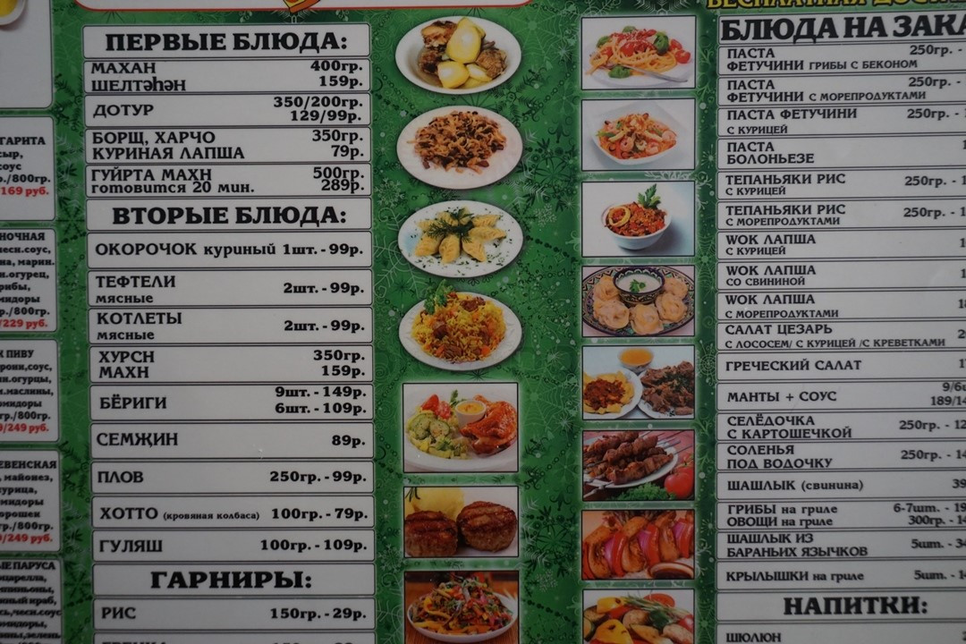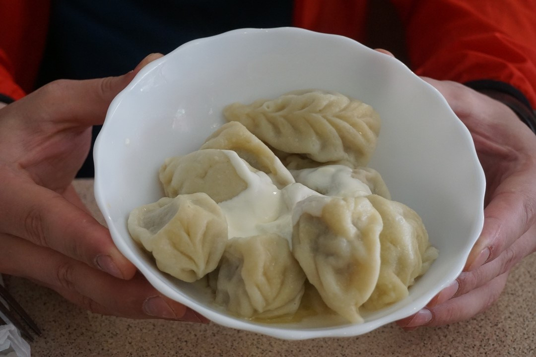 После содержательной экскурсии мы все-таки отправились в кафе, что заприметили накануне, и попробовали пару блюд национальной калмыцкой кухни.