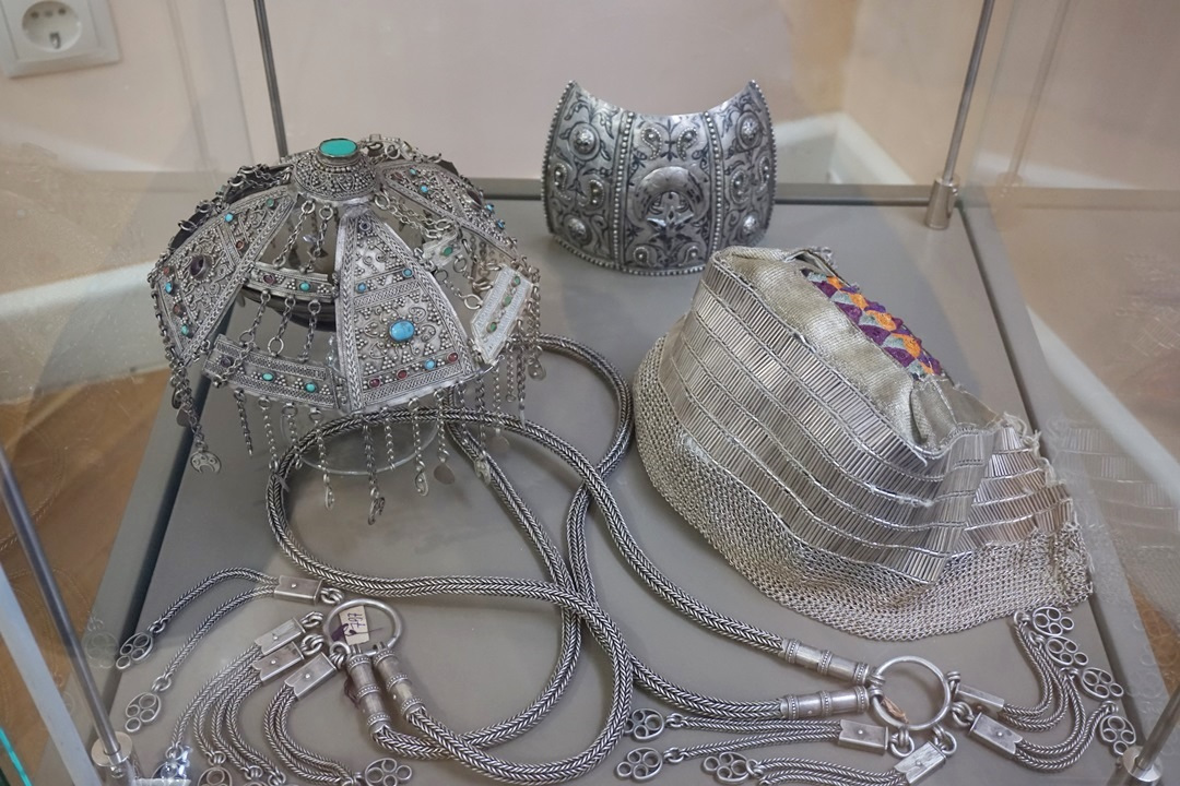 Например, одежду темных оттенков носили взрослые женщины, а яркие костюмы с орнаментом обычно надевали молодые девушки. Коллекцию большого зала музея дополняет собрание серебряных ювелирных украшений.