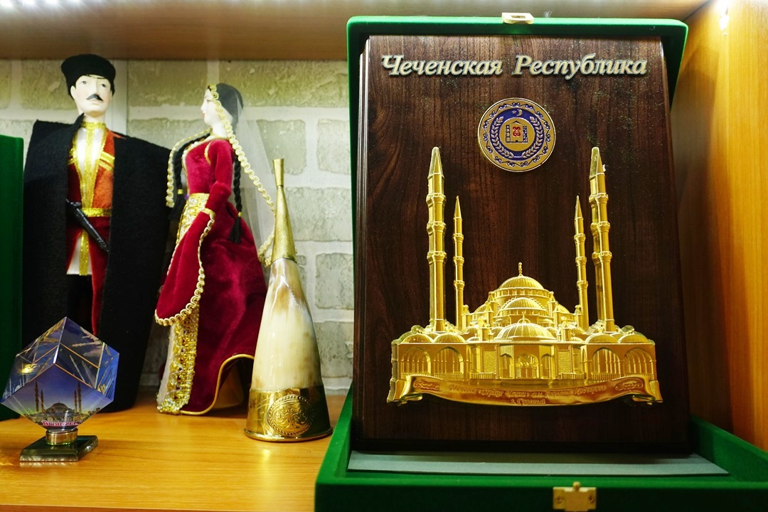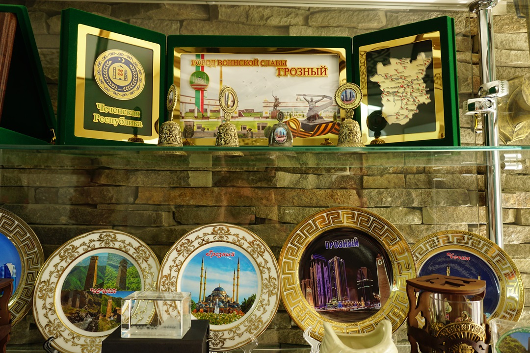 А она, эта действительность, достаточно необычна. Начиная с того, что припарковались мы на проспекте В.В. Путина! Первым делом посетили сувенирный магазин, где обнаружили много интересных изделий с символикой Чеченской Республики. Стало очевидно: для приема туристов здесь есть все необходимое.