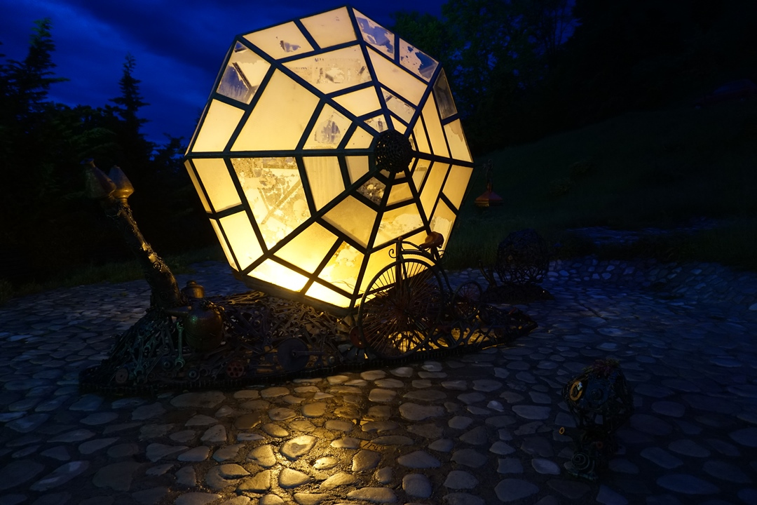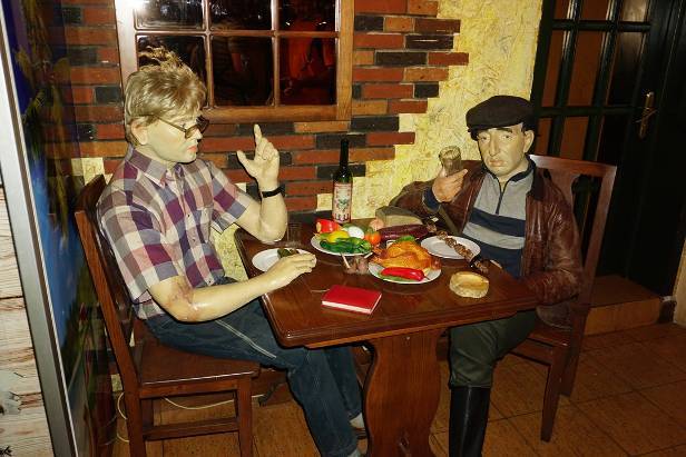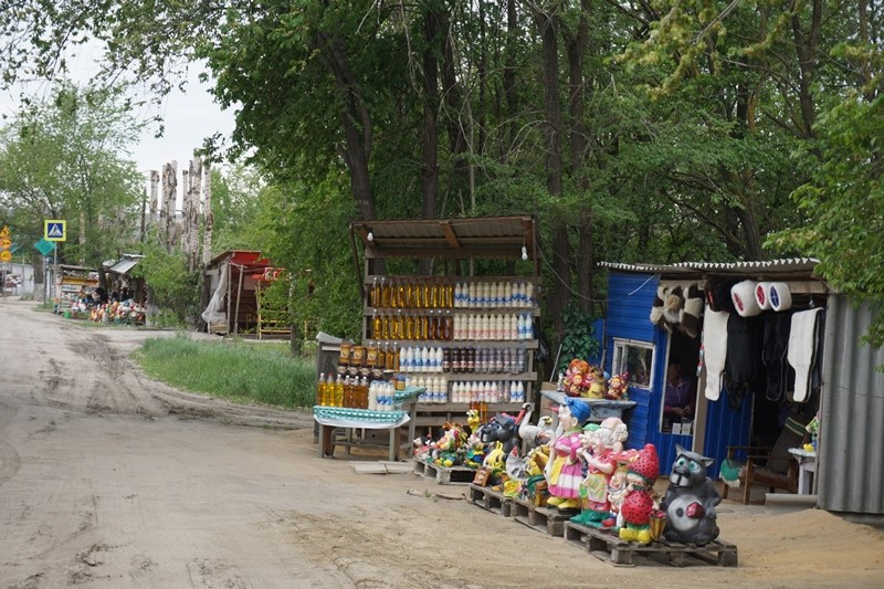 Мы едем дальше через село Оленье, вдоль дороги – сплошная стена лавок, в которых торгуют забавными, немного аляповатыми скульптурами сказочных персонажей, изготовленных из крашеного гипса.