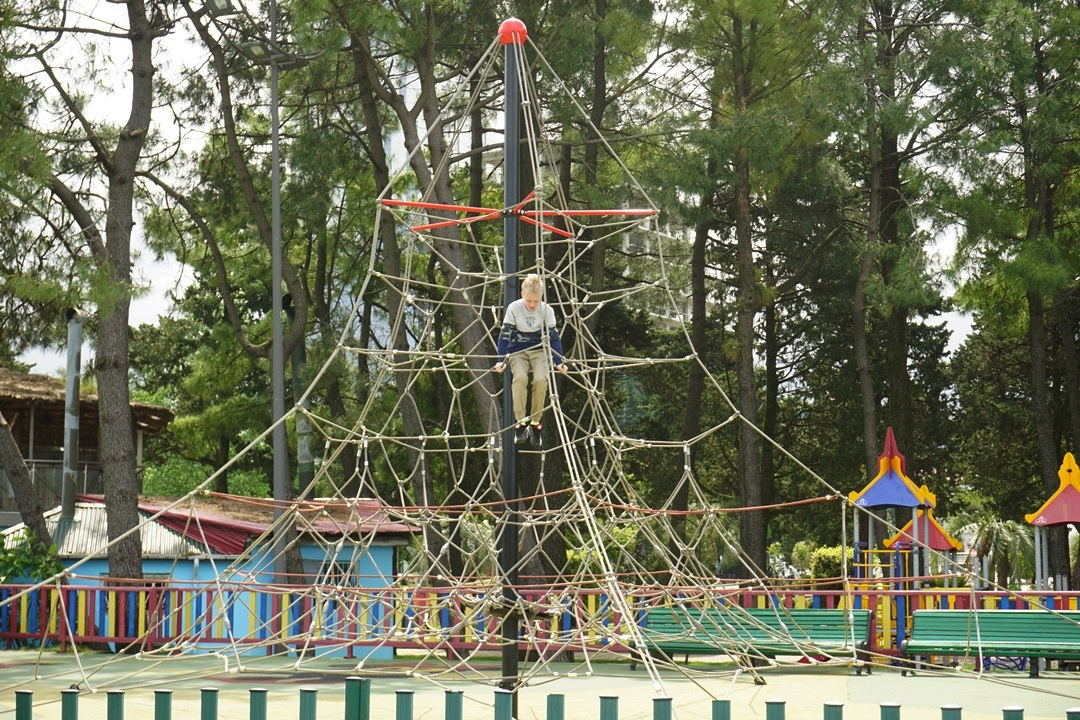 При входе в заведение – аккуратные газоны с забавными скульптурками лесных обитателей, а внутри – уютный антураж, в интерьере сочетаются самые разнообразные элементы от детских рисунков, оставленных на память владельцам и посетителям кафе, до фонтанчика, небольшой заводи и клетки с волнистыми попугайчиками.