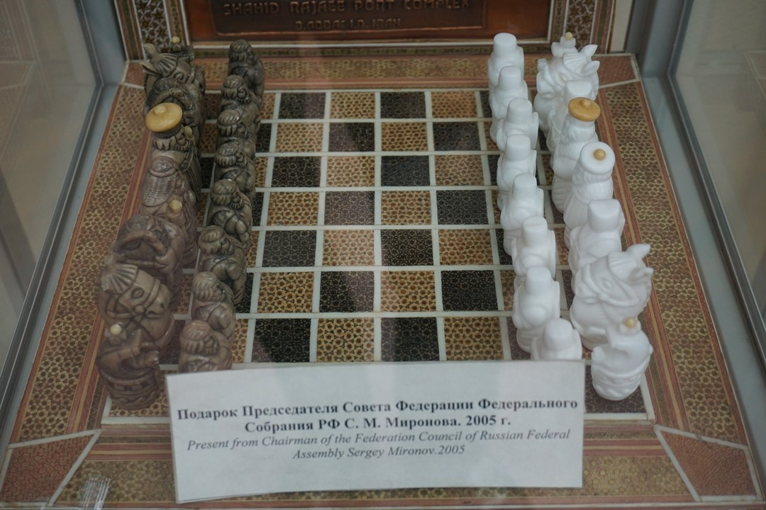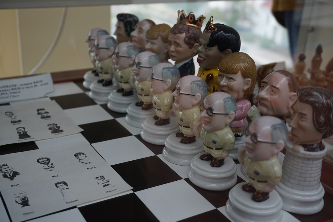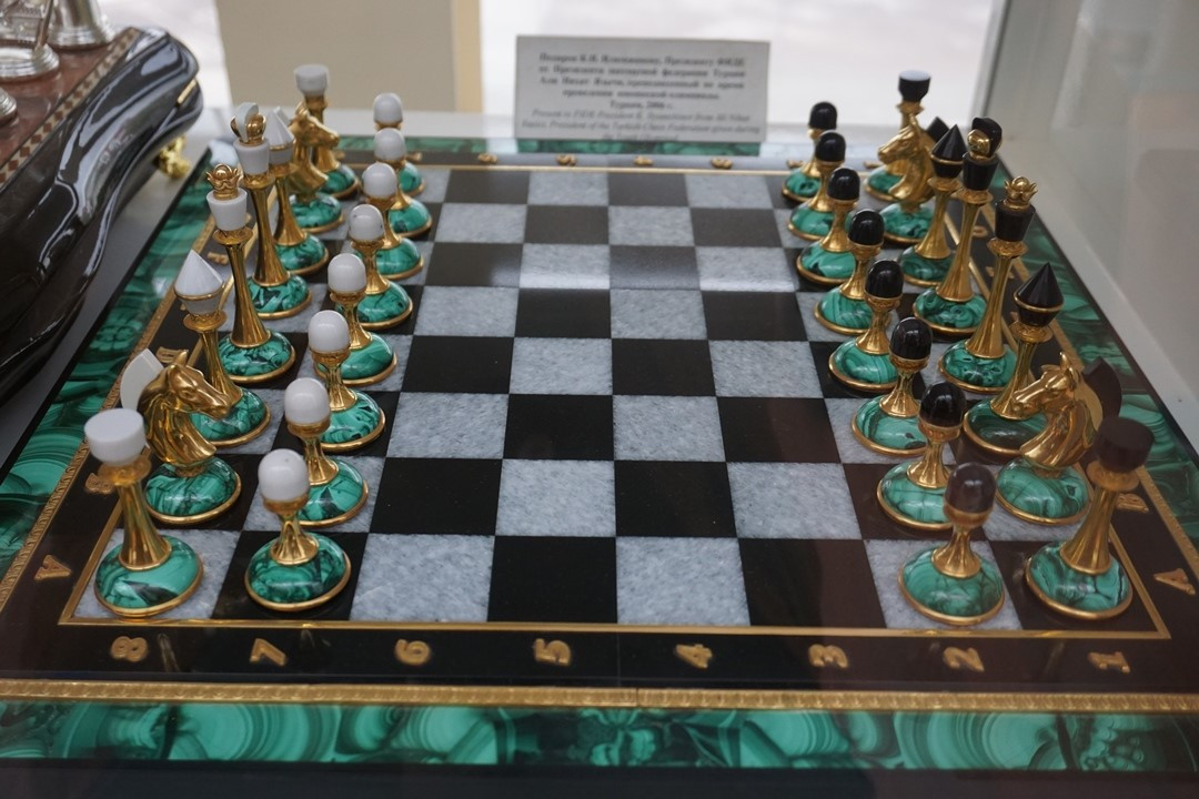 Затем мы отправились в Музей шахмат, где представлено множество экспонатов-подарков их личной коллекции президента республики.