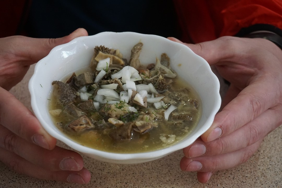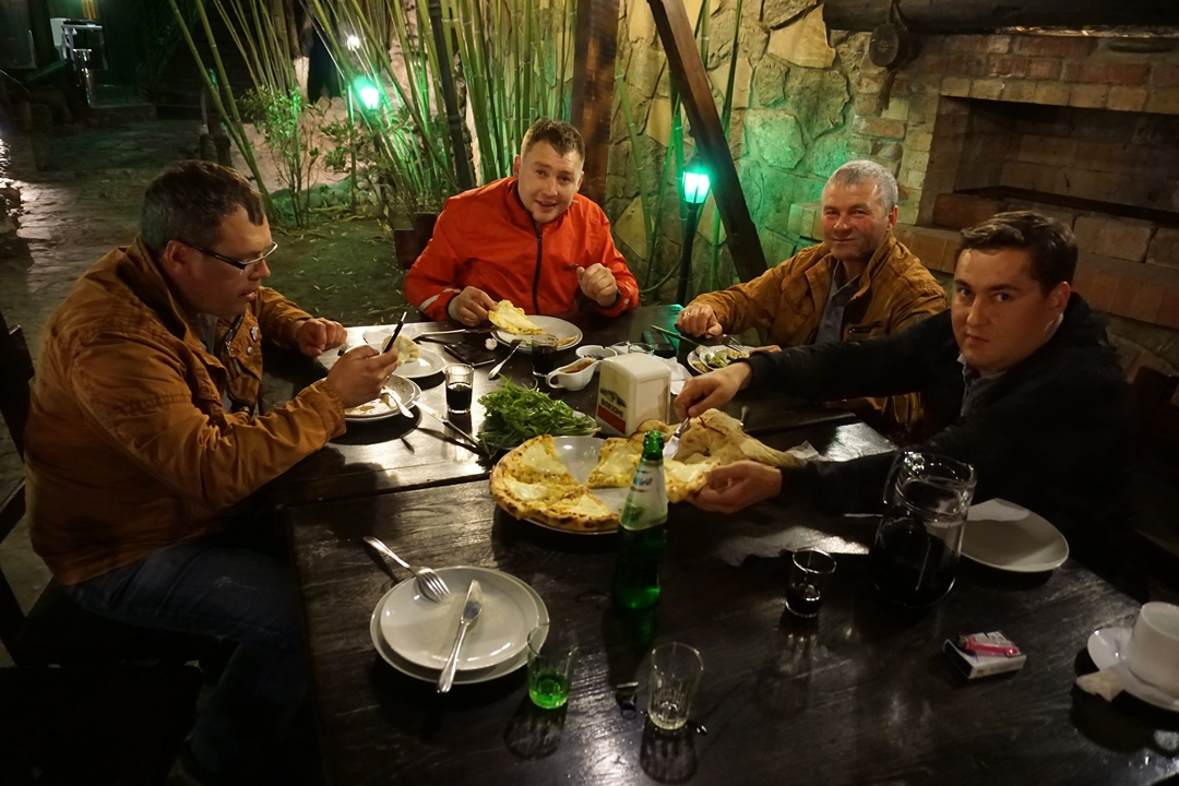 Но прежде чем выехать в дальний путь, заходим в рекомендованный Дигмарой ресторан и заказываем традиционные вайнахские (чеченское) блюда: жижиг-галнаш (галушки с бараниной и чесночным соусом, дема ховлу (халву из пшеничной муки), облепиховый чай. Все очень вкусно и полезно!