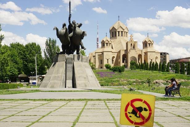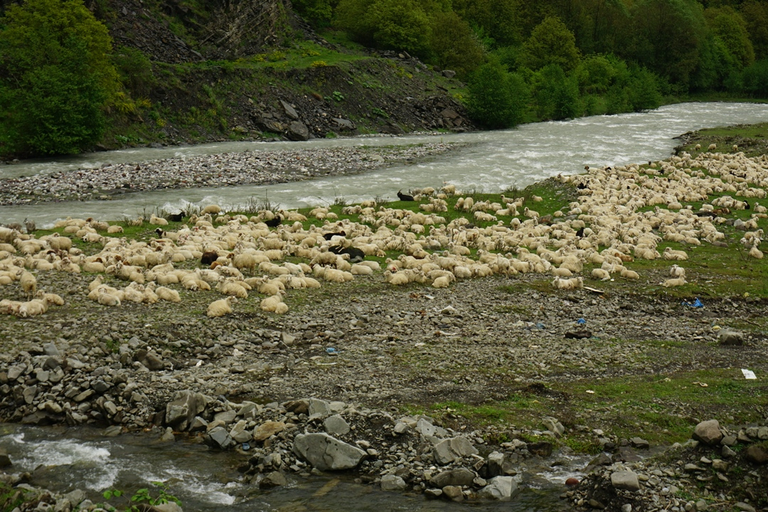 Делаем несколько снимков на фоне реки и с очень реалистичными скульптурами львов, занимаем места в экспедиционном авто, и продолжаем свой путь на юг, в сторону Кавказских гор.