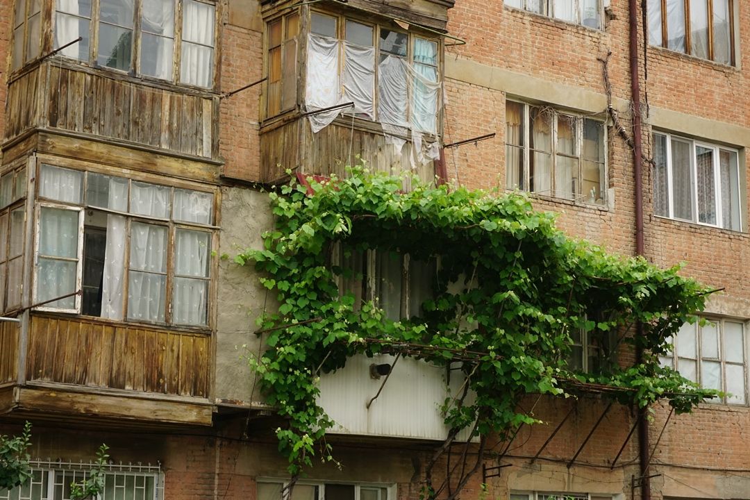 Дома большие, с просто огромными коваными воротами по центру, строятся из красного кирпича, либо окрашиваются в краснокирпичный цвет.