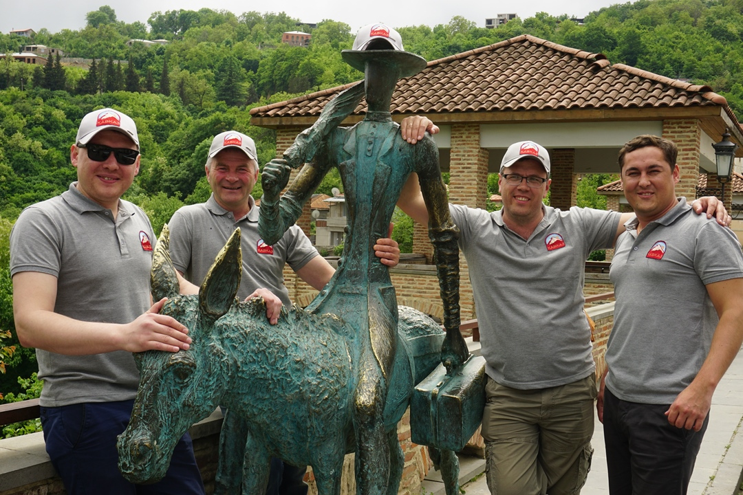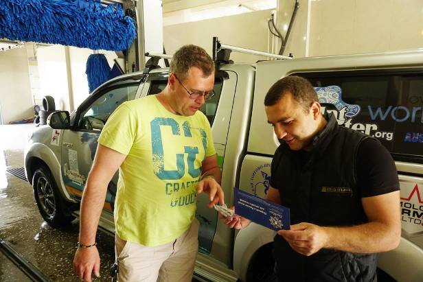 Теперь уже лично знакомимся с сотрудницами центра, их зовут Дагмара и Зарета, тут же находим общий язык и вручаем подарки с символикой кругосветной экспедиции “Hat Master”.