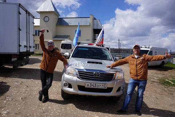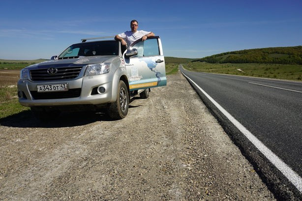 В 11.00 состоялся старт экспедиции из города Вятские Поляны, брендированный автомобиль, украшенный логотипами партнеров и информационных спонсоров проекта, мчится по просторам России, а вокруг зеленеет свежая листва, несмотря на холодную весну радующая глаз и вселяющая оптимизм: движемся мы практически на юг, и вскоре надеемся достичь долгожданного тепла, почти летнего солнышка и цветущих (а где-то, возможно, уже плодоносящих) садов.