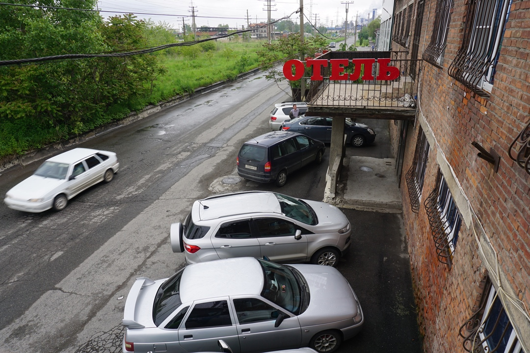 На закате мы прибываем в Сызрань, через систему поиска и бронирования отелей booking.com находим очень неплохую гостиницу, стоящую прямо на берегу реки, и после блуждания по испещренным колдобинами дороги, петляющей по промзоне, прибываем в место своего первого ночлега.