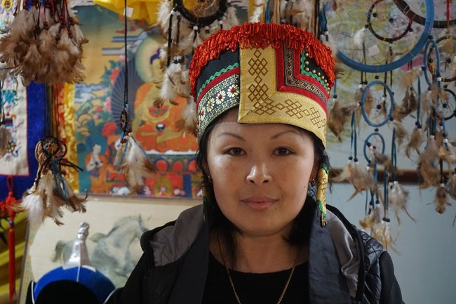 Автор выставки рассказал нам не только о традиционной калмыцкой одежде, но также и о мировоззрении и верованиях калмыков, до принятия буддизма имевших свою уникальную систему ценностей: