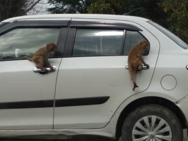 В предгорьях Гималаев солнечно! Мы смогли посетить водопад Патну и искупаться в озере на дне пещеры-грота. Дорога к Патне очень оживленная, больше всех страдают от этого семейства обезьян.