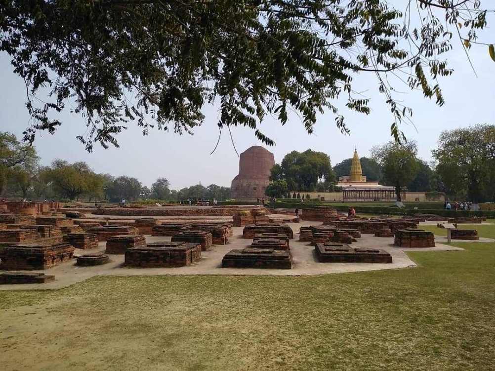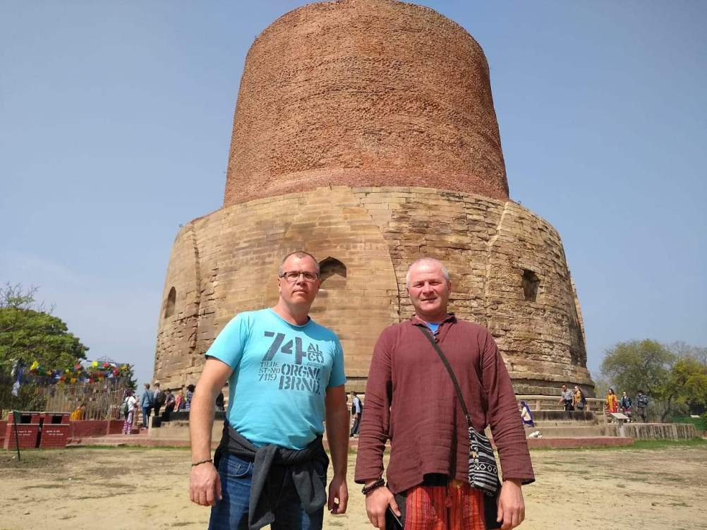 Сарнатх является главным духовным центром паломничества буддистов, место, где Будда Сидхартха прочел свою первую проповедь. Мы сфотографировались на фоне Ступы Дхамек - одного из древнейших памятников буддийской архитектуры. Она была построена по приказу царя Ашока в 249 году до н.э., на том самом месте, где последователи Будды слушали его лекцию. Высота Ступы - 40 метров, диаметр - 28 метров.