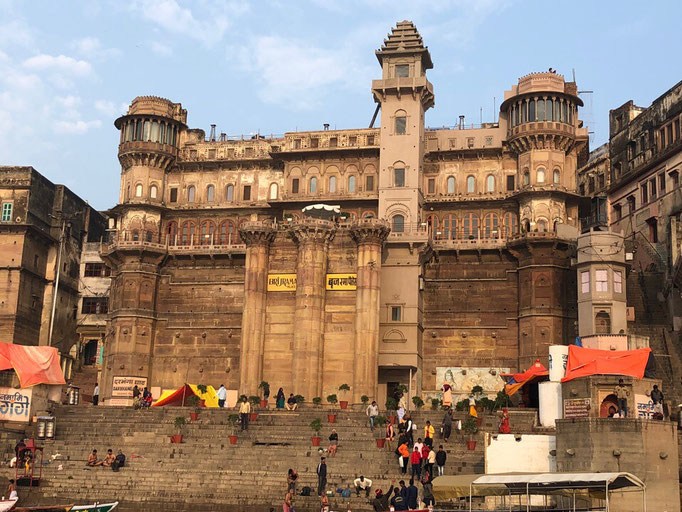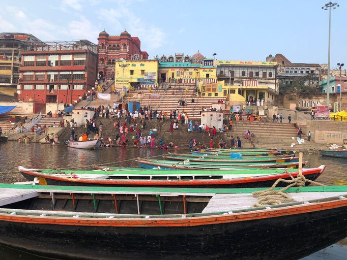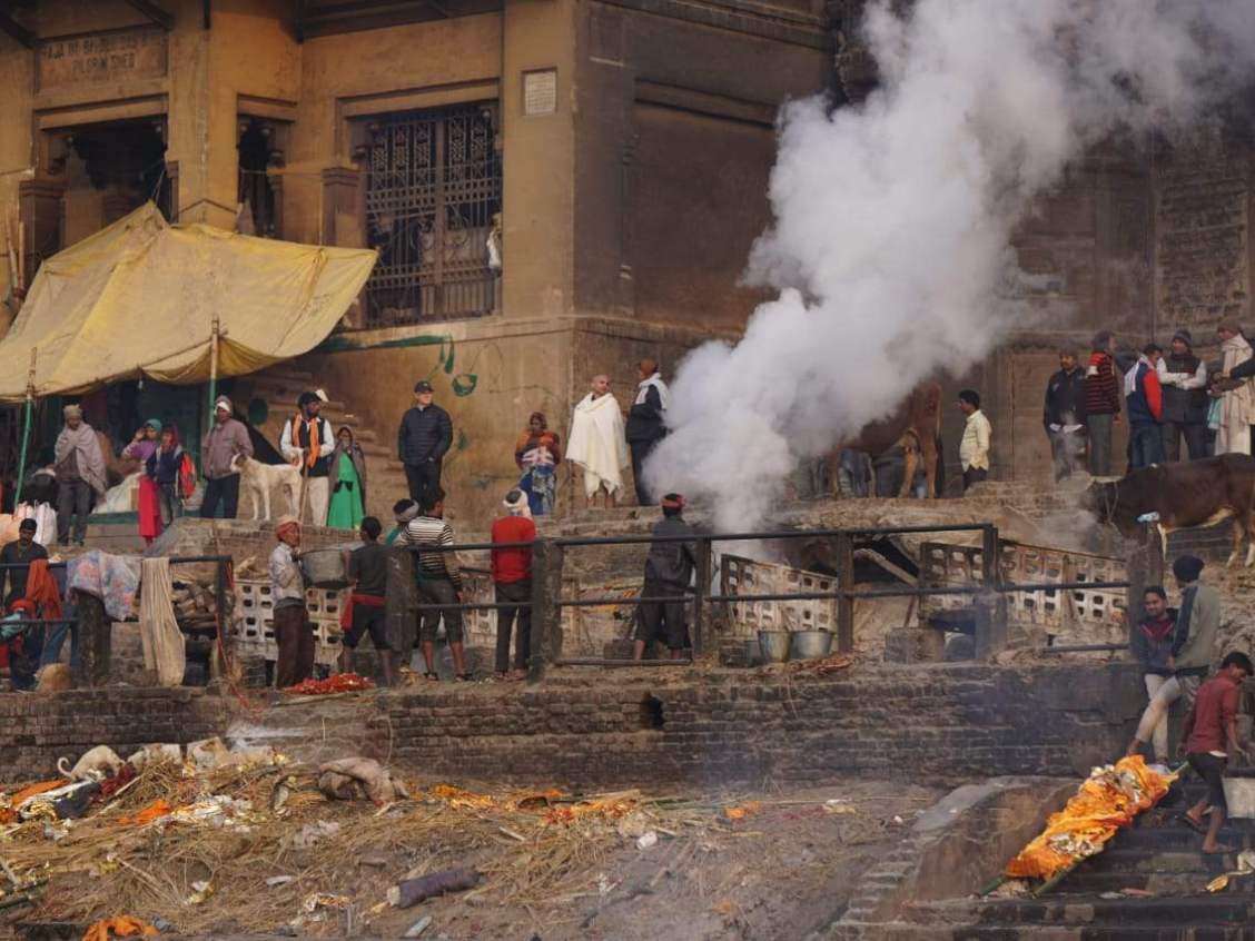 Каменные ступенчатые сооружения вдоль берегов Ганги называются гхатами, они служат для ритуального омовения, там же проходит кремация. Дым погребального костра мы видели лишь издалека.