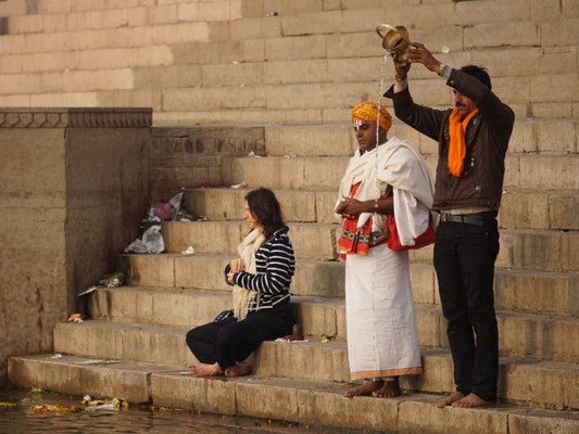 С гостиницей в этот раз повезло. Правда, если бы мы заранее не созвонились с ее владельцами, навигатор, возможно, захотел бы утопить нас в Ганге. Практически у ее берегов мы и устроились. Так что стоило нам вечером свернуть за угол, как мы стали частью огненного ритуала Арати.