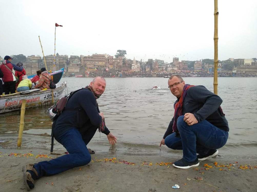 Предупреждаем, что в феврале в Варанаси холодно и ветрено по утрам. На пляже противоположного берега сделали остановку, чтобы согреться чаем.