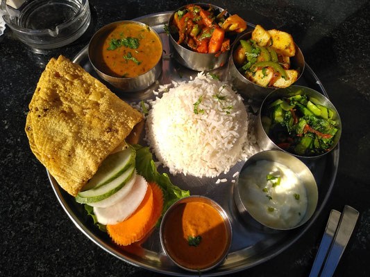 Ужинали на крыше отеля, пробовали индийское мороженое и несколько традиционных блюд, средняя цена на каждое из которых составляет 120-150 рупий.