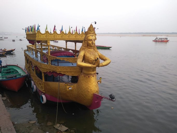 После ритуала нас пригласили в лодку, и мы отправились в плавание по спокойным водам Ганги.